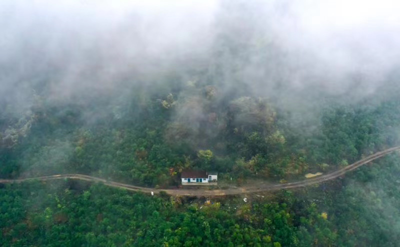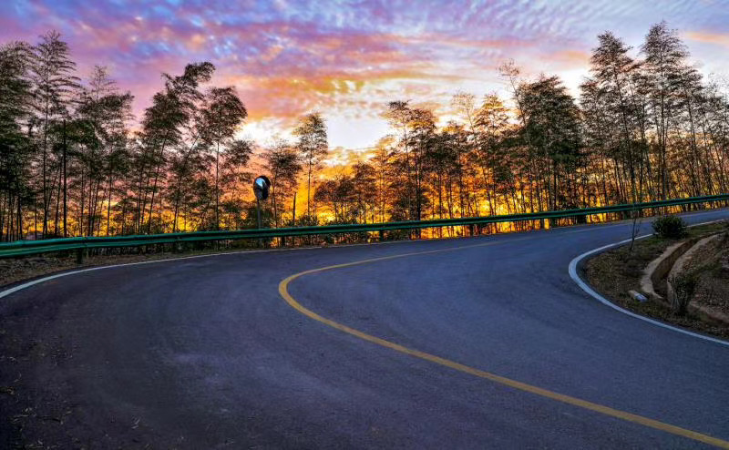 山露晶瑩霧若紗,紫氣凝煙映丹霞。暑熱伴隨浮云散,知了依舊唱溫差。路若盤龍環(huán)戲水,雨灑叢林濕落花。流血流汗成正果,天立忠心報國家。輕車一路看風景,愛我路橋愛我家。